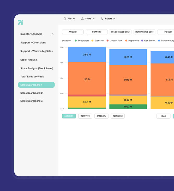 After thoroughly analyzing the client's needs and challenges, we proposed a new solution that leveraged Netsuite's "Saved Searches" feature to export data directly into files that could be used by Power BI. This approach allowed for efficient data extraction without the limitations and delays caused by the Netsuite API. Additionally, the client’s IT department, accounting team, and warehouse management team provided feedback during testing and implementation.